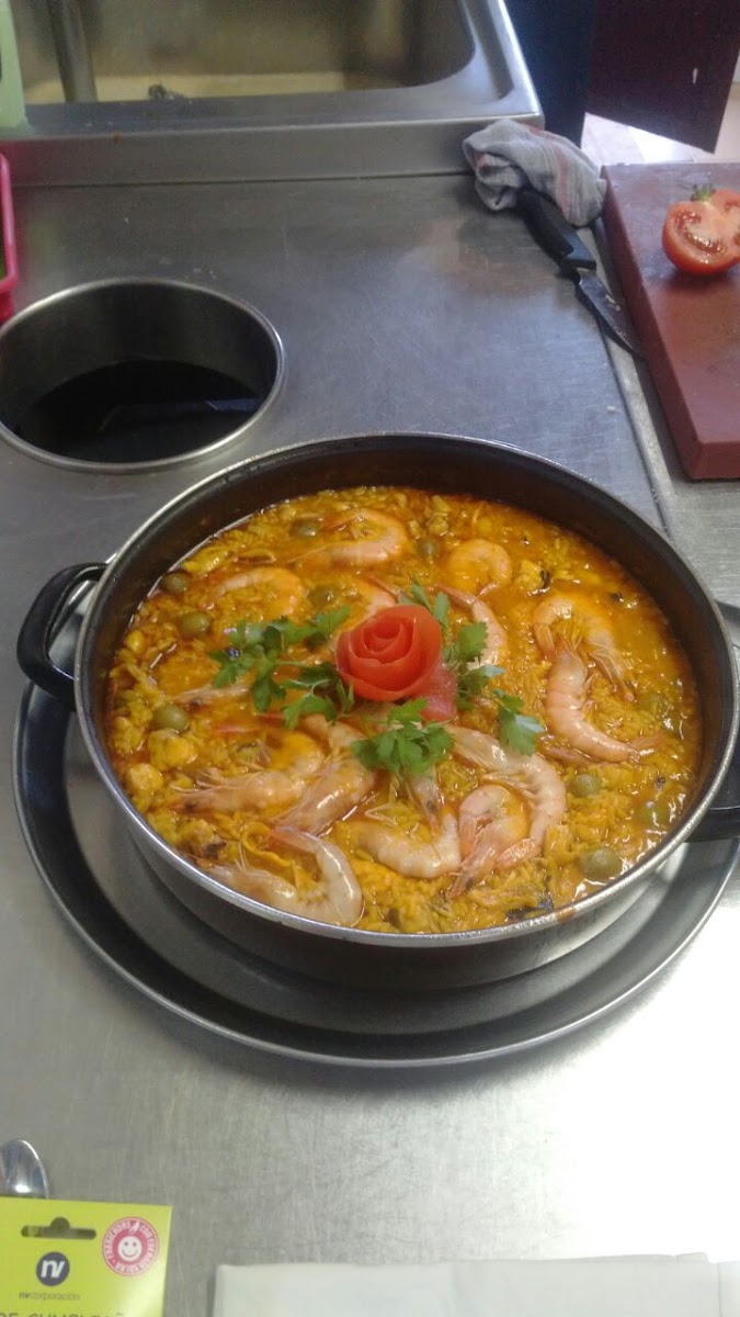 Comida para 14,al centro gambas al ajillo,chipirones fritos y una cazuela de arroz a la zamorana como para 20 personas,con postre y café por 20 euros/persona y cada cosa más rica aún,si a eso le añades el trato recibido por parte del personal sale el resultado de una comida perfecta. Volveremos a comer allí sin duda, aunque estemos a una hora de camino. Gracias y hasta pronto.