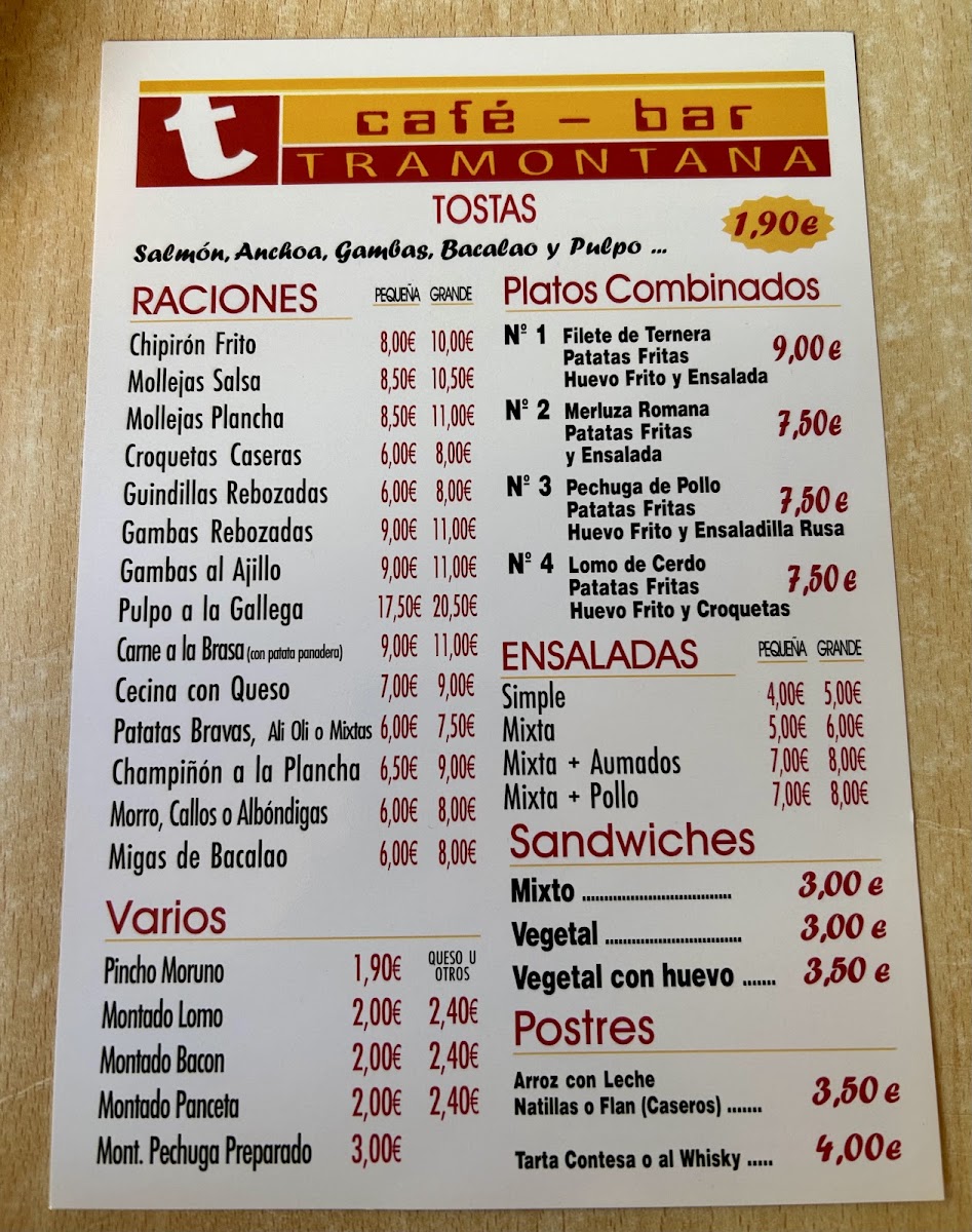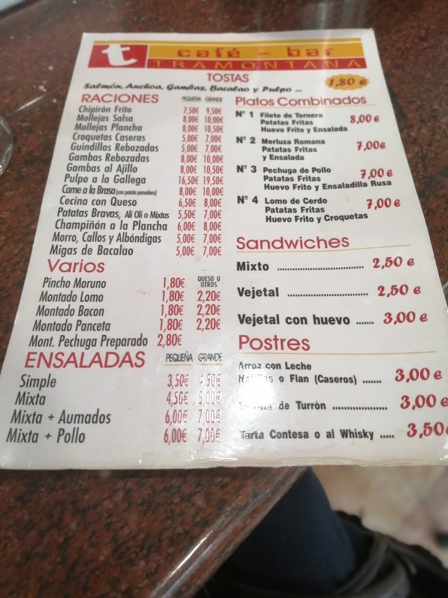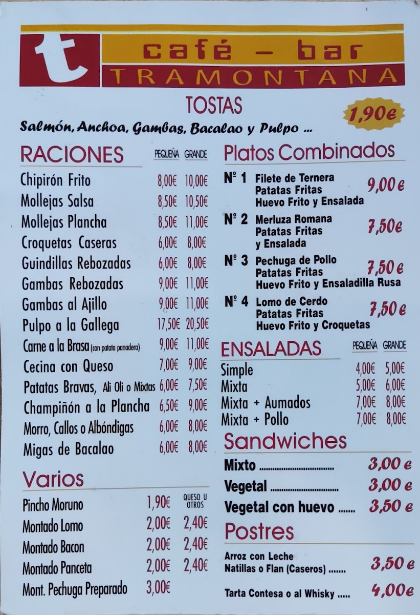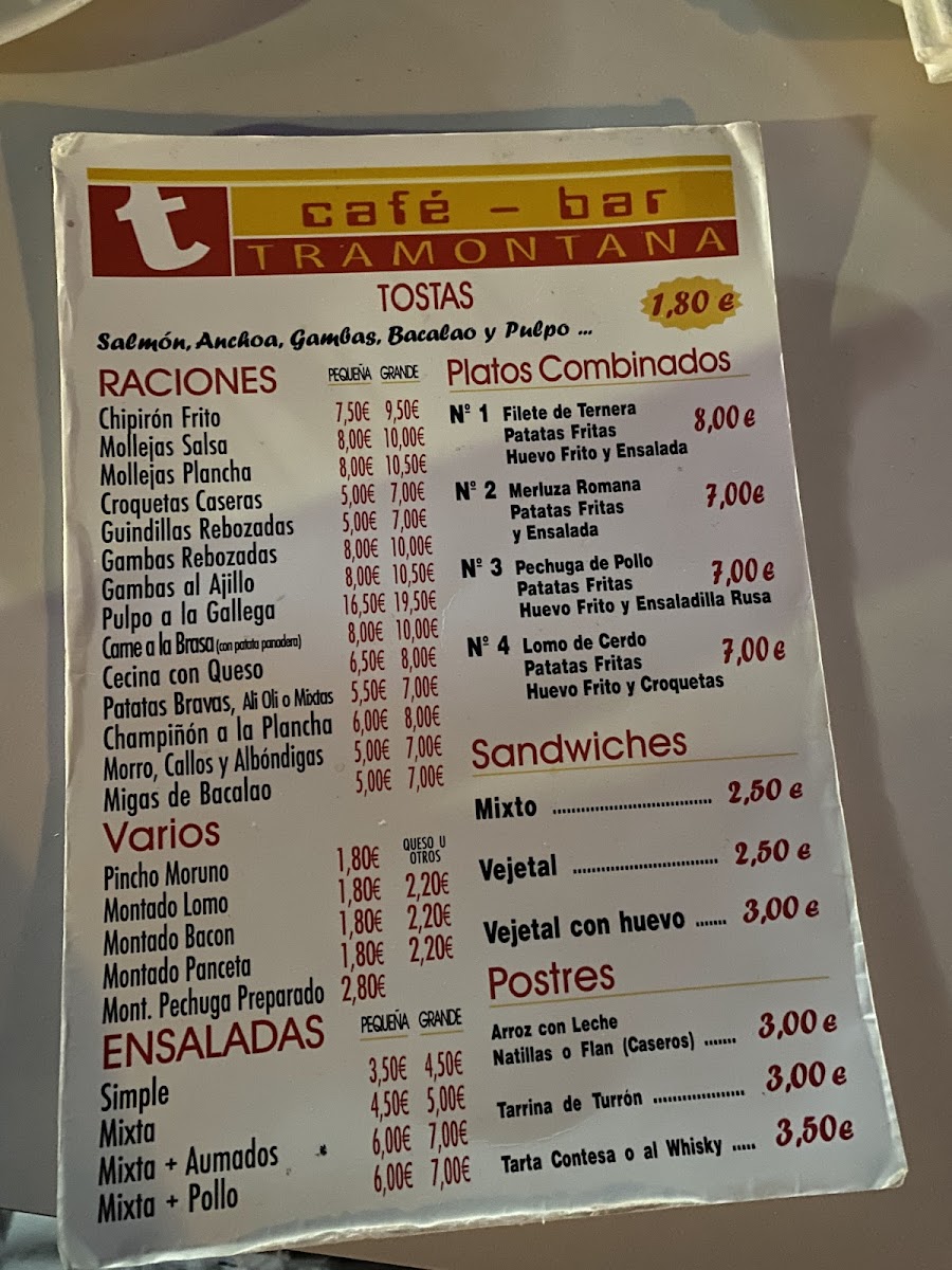 Tramontana Menu